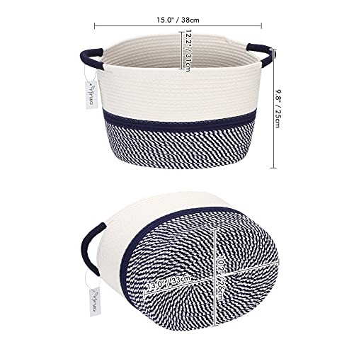Hinwo 収納バスケット コットンロープバスケット 洗濯かご ランドリーカゴ ランドリーバスケット 持ち手付き