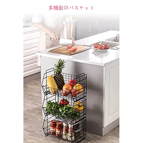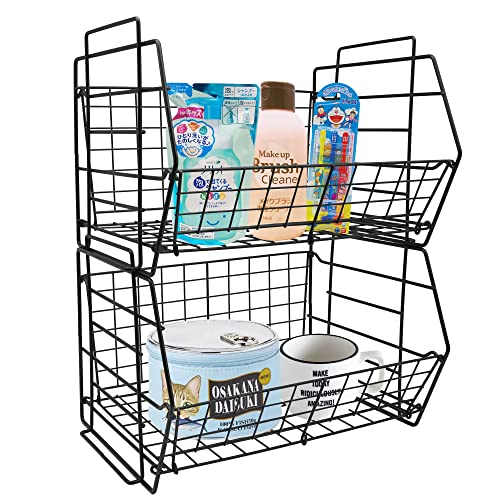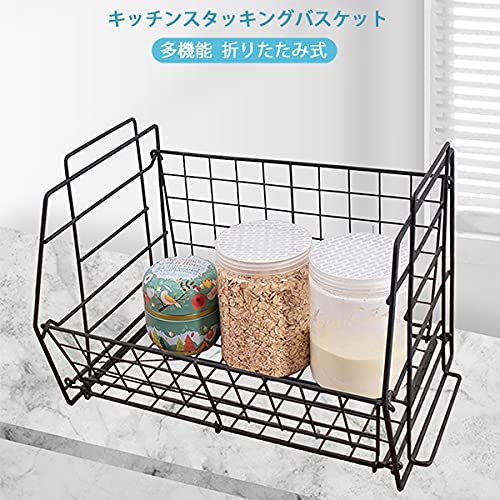 バスケット ワイヤーワ 2個組スタッキングカゴ 大容量 タッキング キッチン収納 収納ケース スプレー 鉄 アイ