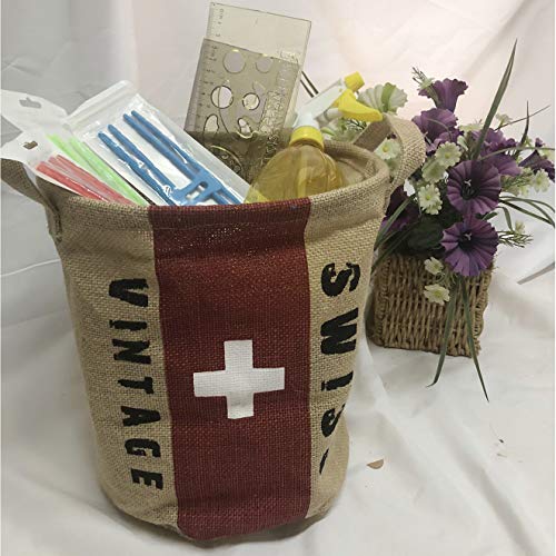 Coralpearl ラウンド黄麻布編みストレージバスケットビン 直径9.5インチ X 11.8インチ 洋服洗濯には適しません!