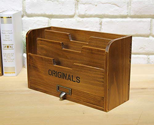 Ansimple ビンテージ風 ナチュラルな 木製 引出し付き 小さめ マガジンラック オシャレ雑貨