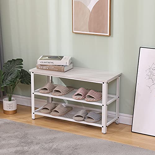 シューズラック 3段 多機能メタルラック 玄関ベンチ 天板付き サイドテーブル 靴箱 靴棚 玄関収納 インテリ