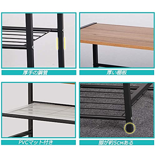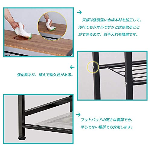 【高耐久性】厚い棚板と鉄パイプブラケットを組み合わせて、強力な耐荷重性を備えています。棚板には強度強い合成木材を加工して、粉体塗装が施され、摩擦やキズ、水、汚れに強くて耐久性も兼備しています。