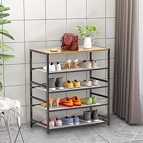 CUGBO シューズラック 天板付き 靴棚 下駄箱 5段 メッシュ棚 収納ラック サイドテーブル コンソー