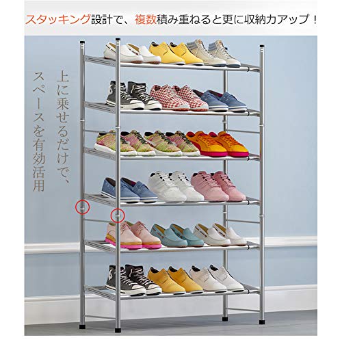 【スタッキング可能】スタッキング可能で、複数のラックを積み重ねると収納力もアップ。4段と6段は二段ずつに分けられますので、必要に応じて分解してのご利用もいただけます。22CMの奥行がスリムで狭い玄関でも場所をとらずに置けます。