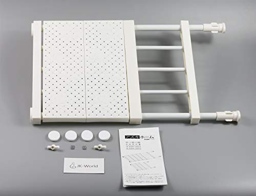 ?【改良点】小物が置けるフラットな棚板が付いているネジや釘を使わずに壁にしっかり固定できる荷重パイプは13mmから20mmにアップ、耐荷重が倍にする33~53cmで自由に幅を調整できる両側のポールが自由に伸縮するので、段差のある壁にも取り付けられる取付簡単です。工具要らず、女性一人でも5分以内取付できます。