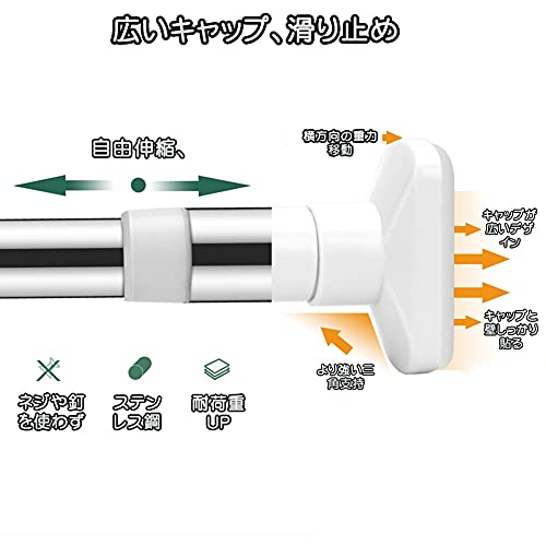 Aseech 突っ張り棒 ステンレス 強い負荷 ドリル不要 伸縮棒 貸家に勧め 空間が広く使える クローゼットロッド