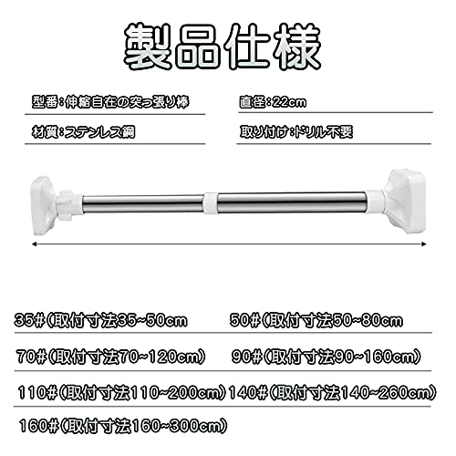 | 商品名 | Aseech 突っ張り棒 ステンレス 強い負荷 ドリル不要 伸縮棒 貸家に勧め 空間が広く使える クローゼットロッド |