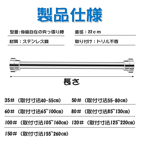 | 商品名 | Aseech 強力突っ張り棒 つっぱり棒極太 ステンレス 強い負荷 ドリル不要 伸縮棒 貸家に勧め クローゼットロッ |