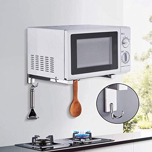 ADVANTAGE:電子レンジブラケットは2つのフックである、あなたはスプーン、手袋などのように、それがハングアップすることができ、すべてを掛けることができます。安定した保管、30kgの支持力、キッチンでの使用は非常に実用的で、大きな支持力があり、落下しにくいです。