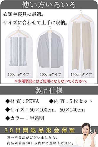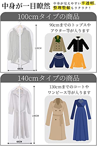 | 商品名 | 洋服カバー 衣類カバー 防虫防カビ ロング 透明 半透明 ショート ビニール JOIEM (60×140cm 5枚) |