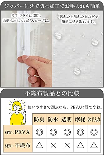 防水性・通気性が抜群】 水に強く風通しのよいPEVA材質。湿気から服を守り、カビ・ニオイ・虫を防ぎます。汚れたら水拭き可能。タバコのニオイ・生活臭・虫食いから衣類を守って長持ちさせます。