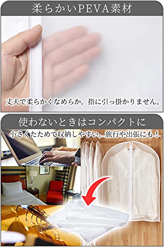 優れた防塵性能のPEVA材質】 注:ハンガーは付属していませんホコリや汚れをしっかり防ぐ防塵素材。ペットの毛や部屋のほこりから服を守ります。不織布カバーよりも防塵性能が高く、大切な衣類をきれいに保管できます。汚れの侵入を最小限に食い止めるため、ハンガー穴は小さめにし、底部分を縫い合わせました。