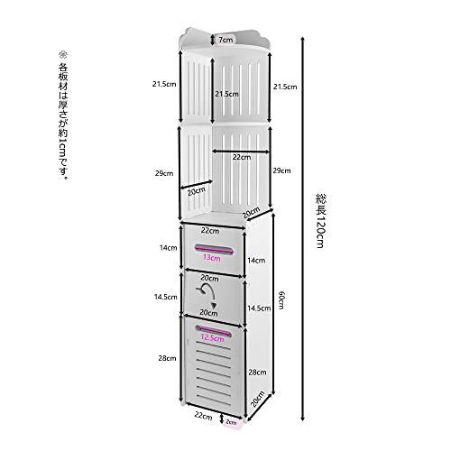 ?【商品仕様】(1)サイズ:約幅22cm×奥行20cm×高さ120cm (2)重量:4.75kg (3)耐荷重:総計約40kg (4)色:ホワイト(白) (5)材質:ポリ塩化ビニル(PVC板材)