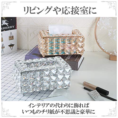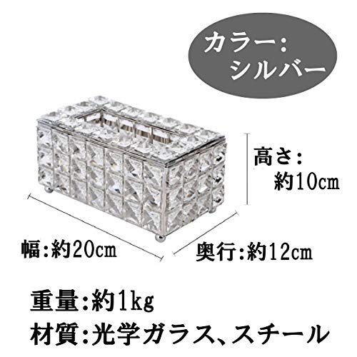 HAMILO ティッシュボックス ティッシュケース クリスタルガラス インテリア 豪華 応接室 居間 (シルバー)