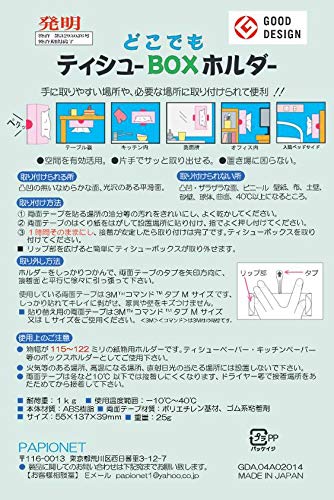 PAPIONET どこでもティシューBOXホルダー ホワイト (箱幅115~122mmティッシュボックス用)