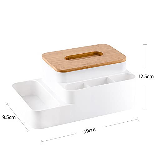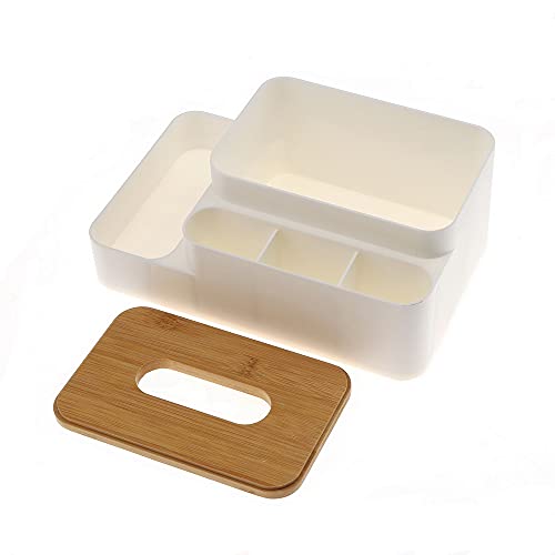 【商品内容】:収納ボックスは1個入りです。サイズは約19x12.5x9.5cmです。色はホワイトです。4格子があります、多機能な収納ボックスです。左側が1格子があります、ティッシュケースの前は3格子があります。