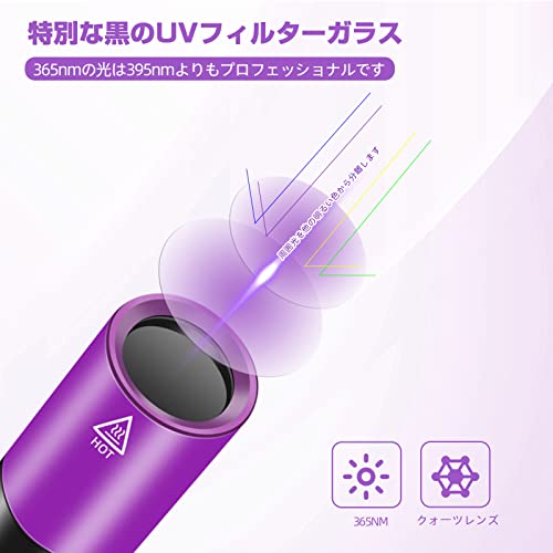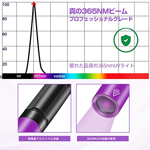 【一流の品質、より長いバッテリー寿命】このブラックライト懐中電灯は高品質のアルミニウム合金で作られています。 それは快適で、引っかき傷に強く、頑丈で耐久性があり、5フィートの衝撃に耐えることができます。 懐中電灯は高出力を維持できます。バッテリーは長時間完全
