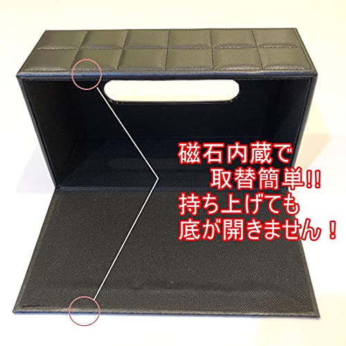 底面がマグネット式になっているので、ティッシュボックスの底蓋を開き、ボックスティッシュを入れるだけで詰め替え完了。さらに持ち上げて