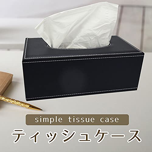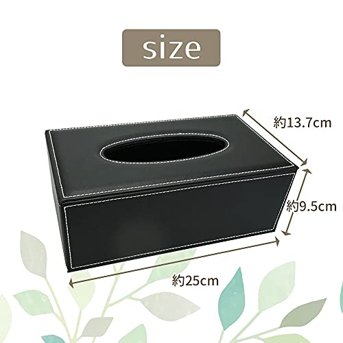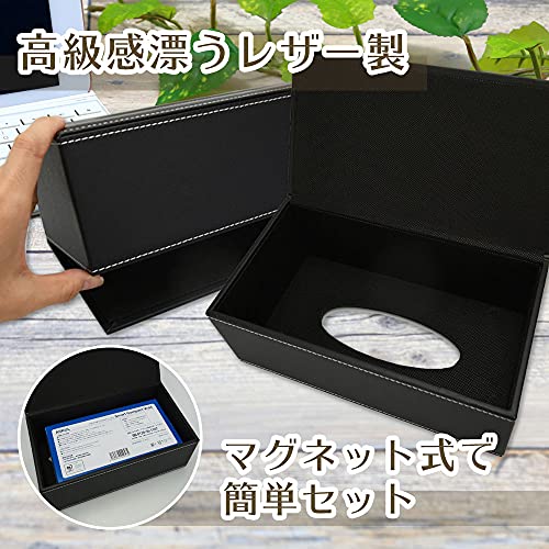 ティッシュケース ティッシュボックス 卓上 置き型 PUレザー マグネット仕様 無地 モダン (ブラック)