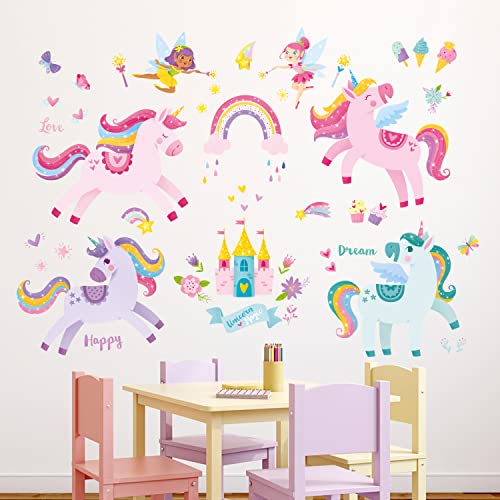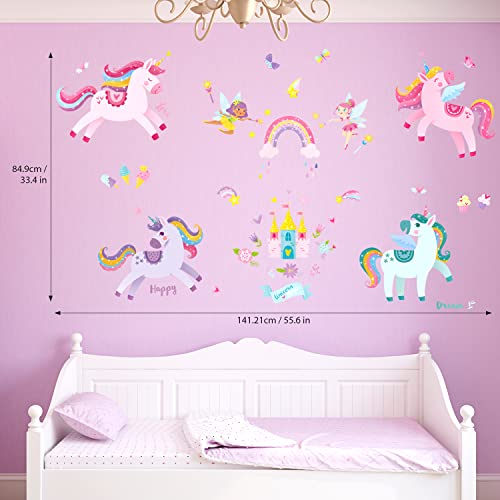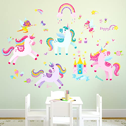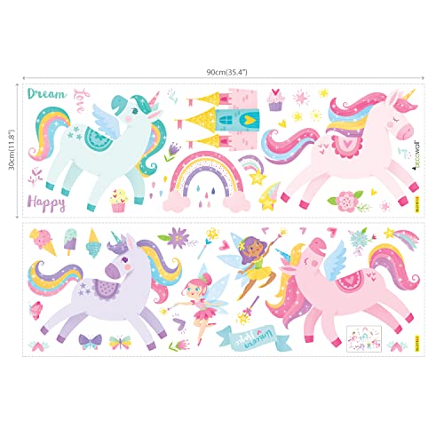 DECOWALL SG-2119 ユニコーンと妖精 ウォール ステッカー デコ 幼稚園 保育園 子供部屋 DIY 用 壁転写 シール ウォー