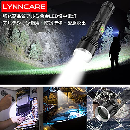 懐中電灯 LED LYNNCARE 超高輝度 4800ルーメン XHP90 USB充電式 5モード調光 ズーム式 防災 停電対策 ハンディライト