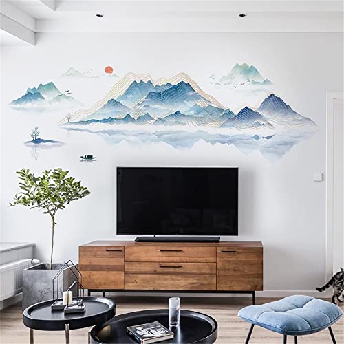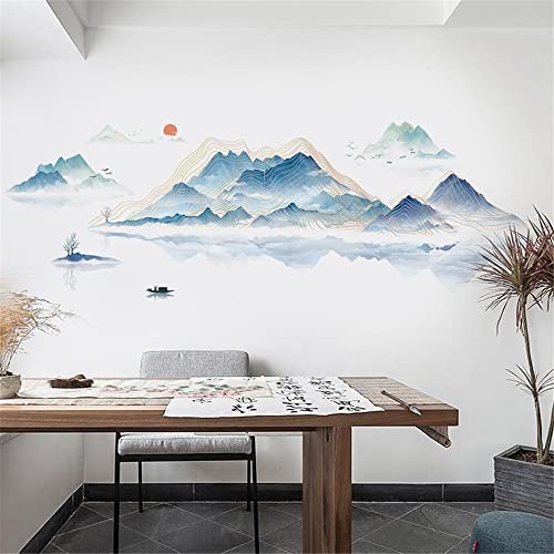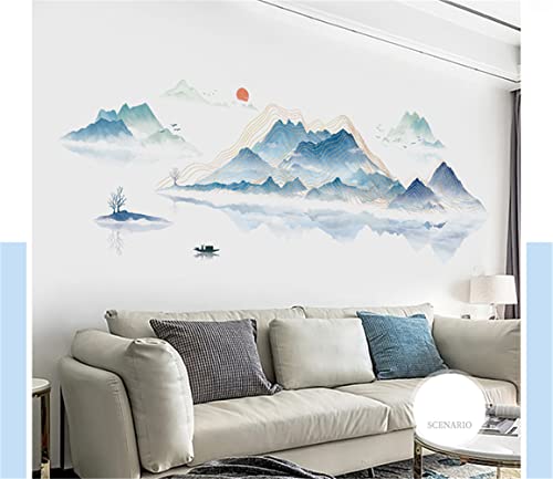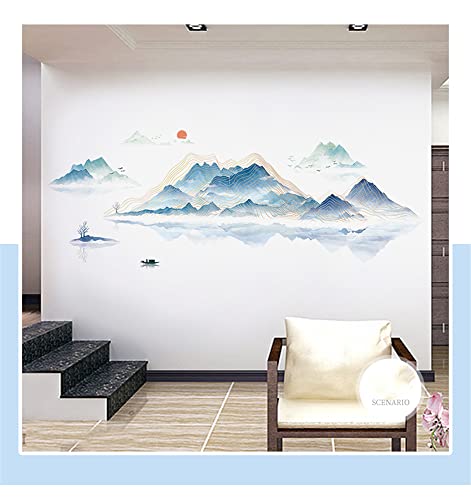 ウォールステッカー 山 水 絵画 和風 古風 水墨画 ポスター インテリア 部屋の壁紙シール 3D立体 シミュレーシ