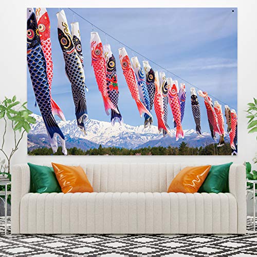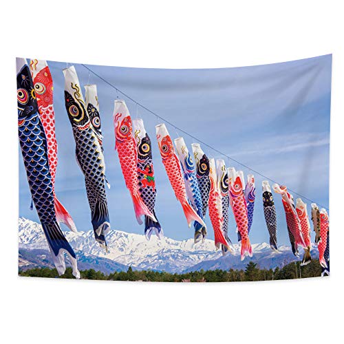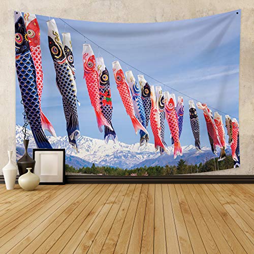 Qinunipoto タペストリー 和風 鯉のぼり 鯉の凧 雪山 150x100cm 日本 和柄 吊り布 壁の装飾 アート 多機能布 大判 イ