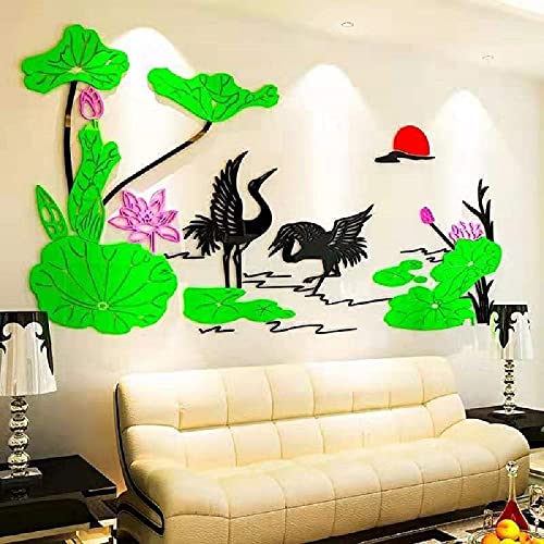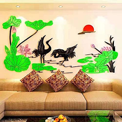 YUJIA ウォールステッカー 鶴 ハスの花 アクリル シール 3D効果 おしゃれ 壁紙 diy シンプル テレビ背景 壁装飾