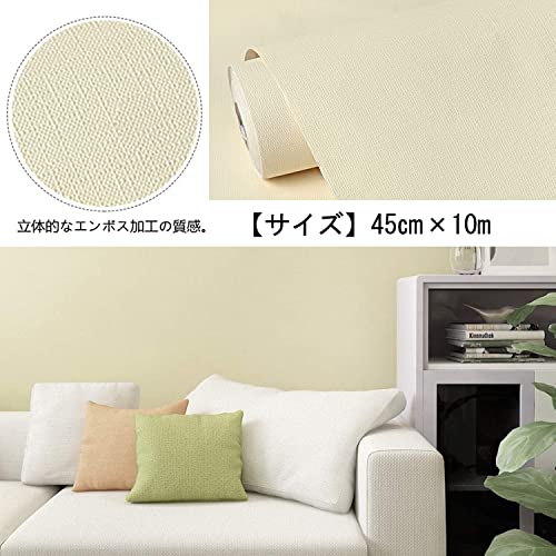 EASYLEE 壁紙 シール ライトイエロー クリームベージュ はがせる壁紙 ウォールステッカー 厚手45cm×10m リメイク