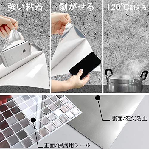 【本物っぽくリアル】ガラスタイルのツヤ、光沢、立体感、目地など質感を再現する3Dリメイクシール。台紙から剥がして並べて貼るだけでリフォーム完成できで、初心者にもプロのように仕上がり可能です。はがせるタイプで賃貸に適用されます。