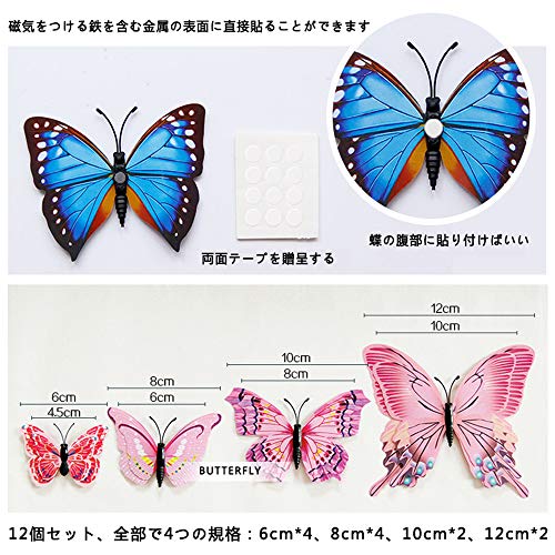 ULIN 立体 3D 蝶 ウォールステッカー 壁紙シール 磁石 両面テープ シール リビング 冷蔵庫 インテリア 壁シール