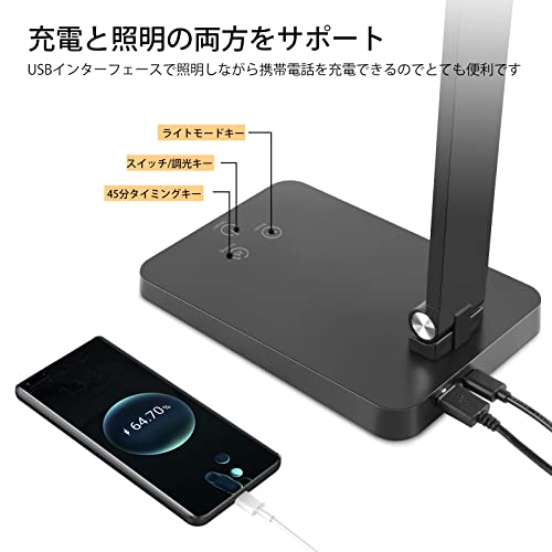 デスクライト目に優しい ledライト 卓上スタンド 電気スタンド 明るさ調節 デスクライト折り畳み式 USB給電 省