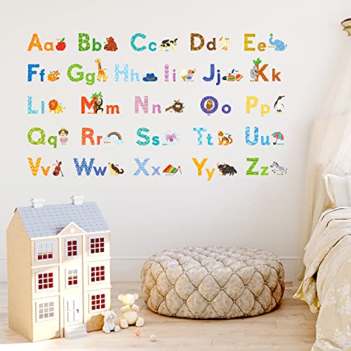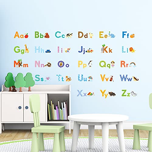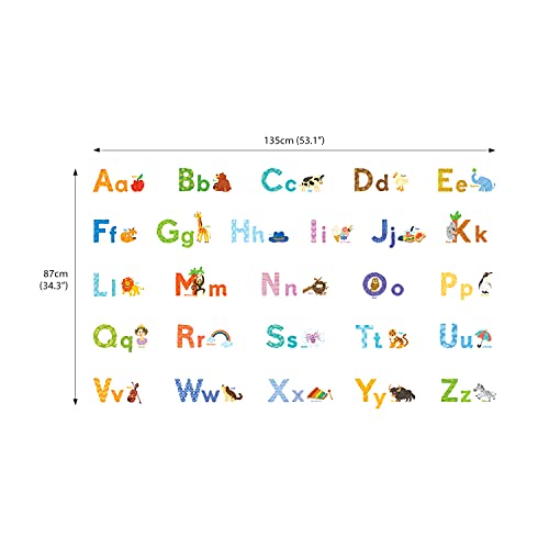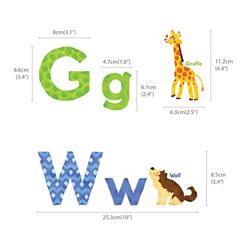 DECOWALL DW-1608S 水彩画動物 アルファベット ウォール ステッカー デコ 幼稚園 保育園 子供部屋 DIY 用 壁転写 シ