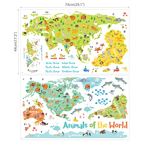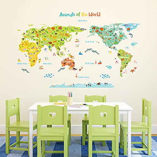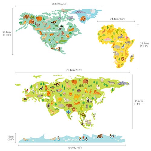 DECOWALL DL-1815 世界の動物たち 世界地図 (大) ウォール ステッカー デコ 幼稚園 保育園 子供部屋 DIY 用 壁転写 シ
