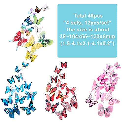AHANDMAKER 4セット 48pcs バタフライウォールステッカー 3Dバタフライウォールステッカー、生π的バタフライステ
