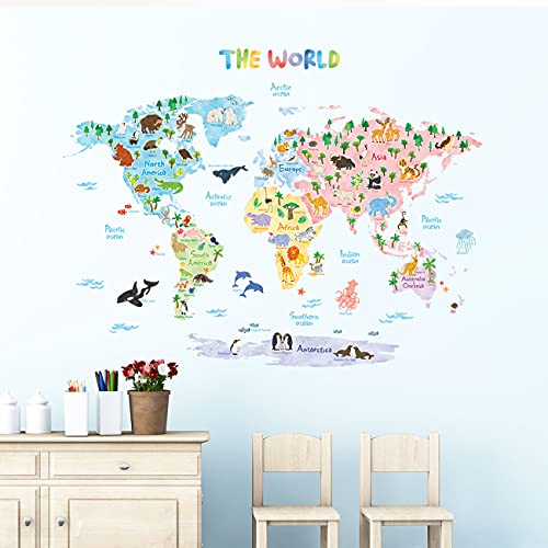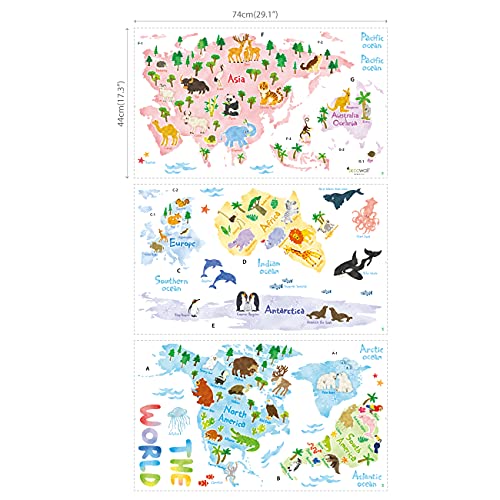 DECOWALL DLT-1615 動物世界地図 (特大) ウォール ステッカー デコ 幼稚園 保育園 子供部屋 DIY 用 壁転写 シール ウ