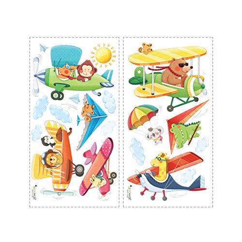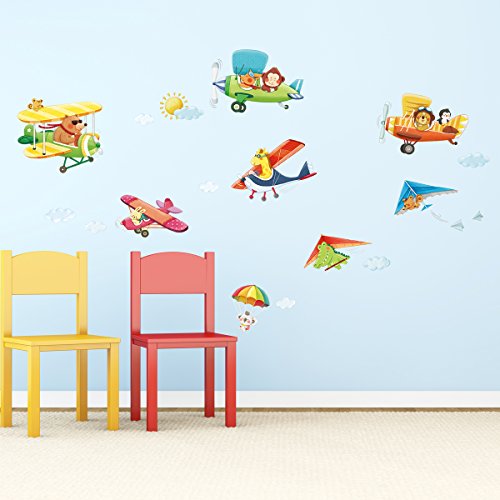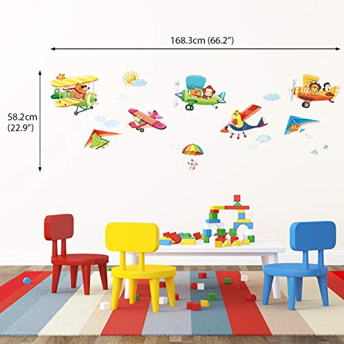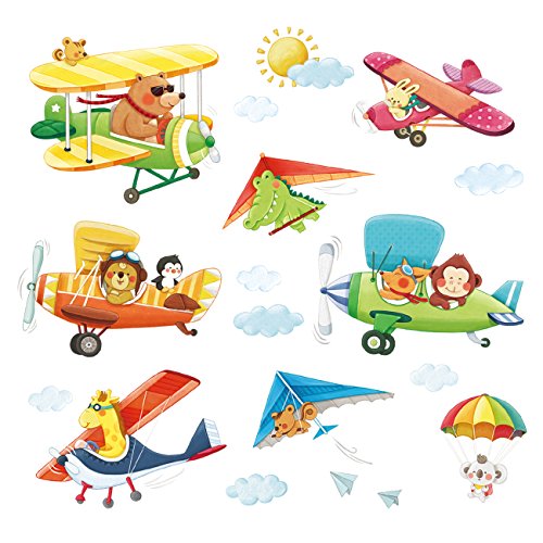 DECOWALL DA-1506BC 動物の複葉機 ハンググライダー ウォール ステッカー デコ 幼稚園 保育園 子供部屋 DIY 用 壁転