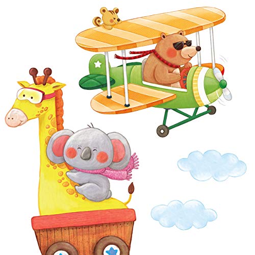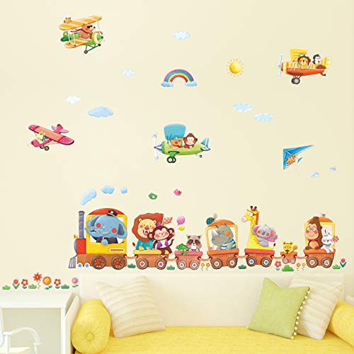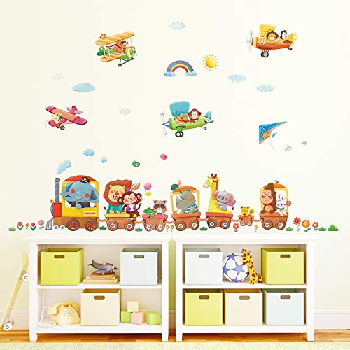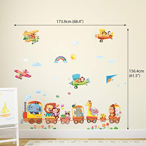 DECOWALL DL-1406AL1901 動物列車と複葉機 (特大) ウォール ステッカー デコ 幼稚園 保育園 子供部屋 DIY 用 壁転写 シ