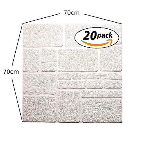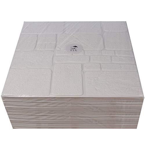 ISL ウォールステッカー 石目調 白 3Dクッション壁紙 70cmx70cm 50枚セット