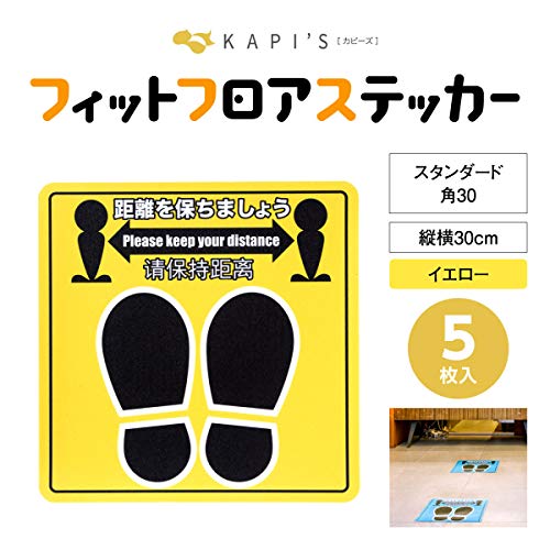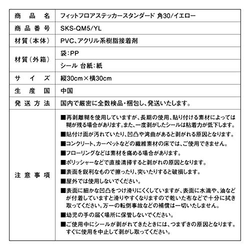 | 商品名 | YKCJapan フィットフロアステッカースタンダード5枚入 イエロー 縦30×横30cm SKS-QM5/YL |