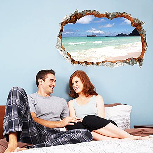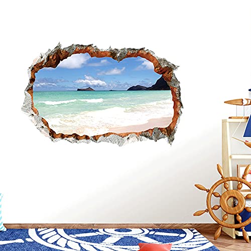 ウォールステッカー 窓 海 南国 ビーチ 風景 おしゃれ シール お風呂 壁紙 壁の穴 レンガ トリックアート ヤシ