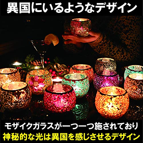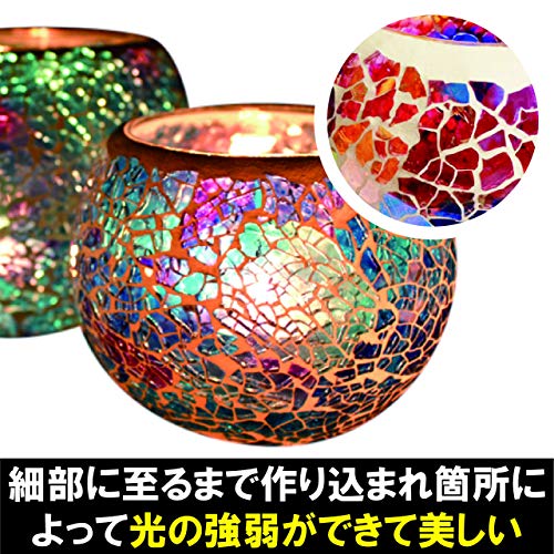 まるで異国にいるようなデザイン:カットされたモザイクガラスが一つ一つ貼り付けられてます。神秘的な光は幻想的に輝き、まるでトルコやギリシャのような異国にいる感じような気持ちになるデザインが特徴です。アンティーク風や和テイストのインテリアにしっくり馴染む、落ち着いたデザインがとっても上品。アロマキ