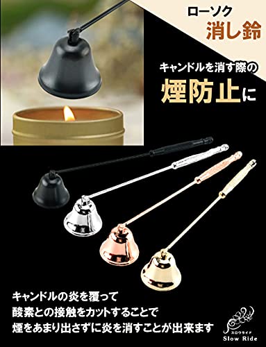 キャンドルの芯が長くなって炎が大きくなってきたら芯切りばさみを使いカットします。 キャンドルを消す際の煙防止にはローソク消し鈴が大活躍!キャンドルの炎を覆って、酸素との接触をカットすることで 煙をあまり出さずに炎を消すことが出来ます。