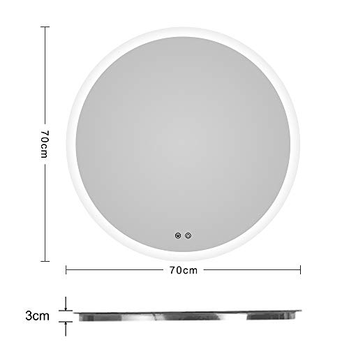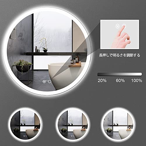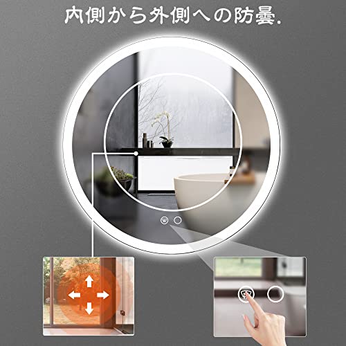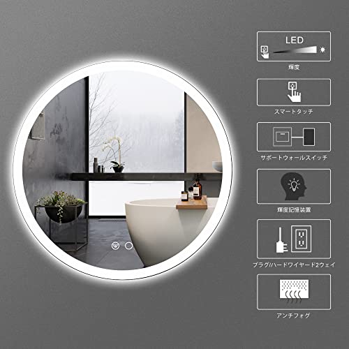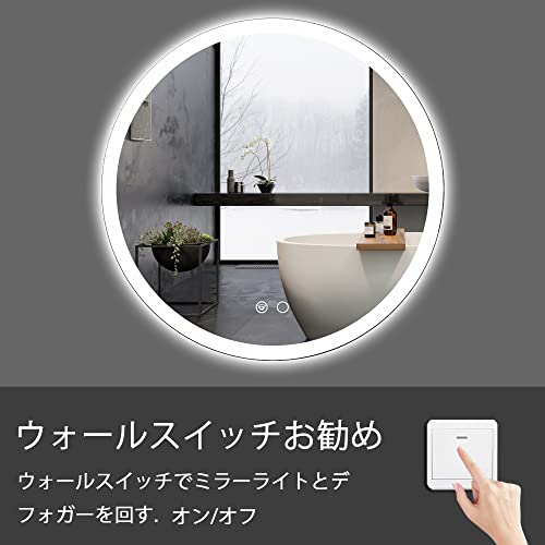Tokeshimi ミラー、丸型LED照明付き鏡、壁掛け 鏡 おしゃれ 浴室 壁掛け式バスルームの寝室の化粧台 (70CM*70CM)