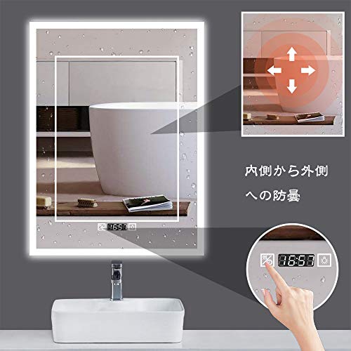 Tokeshimi 防曇 防水LED ミラー化粧鏡 洗面所 ライト付浴室鏡 洗面台 照明付き 壁掛けタイプ おしゃれ スクエアミ