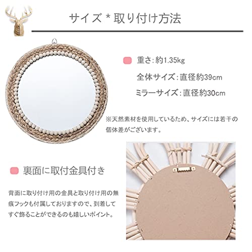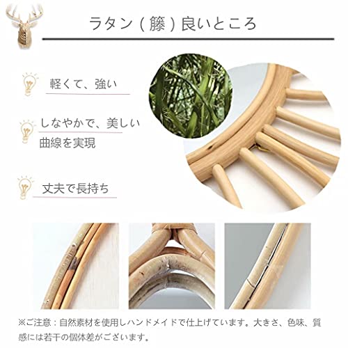 ?【素材】:籐(ラタン)+ガラス 【全体サイズ】:直径約39cm 【フック付き】背面に取り付け用の金具と取り付け用の無痕フックも付属しておりますので、到着してすぐ飾ることができるのも嬉しいポイント。安心してご注文ください!
