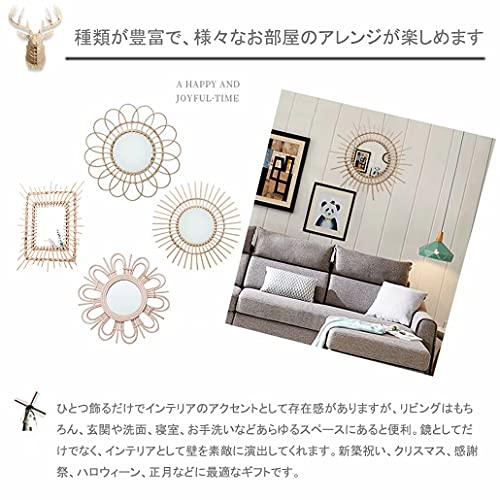 ?【商品説明】この掛け鏡は藤条と鏡の二つの部分から構成されています。鏡を壁にかけてもいいし、テーブルに置いてもいいし、家を飾ってもいいし、家に静かな雰囲気をもたらします。また、鏡は小さいですが、とてもユニークで、綺麗です。玄関に置いて、毎日出かける前に身だしなみをチェックするのにぴったりです。