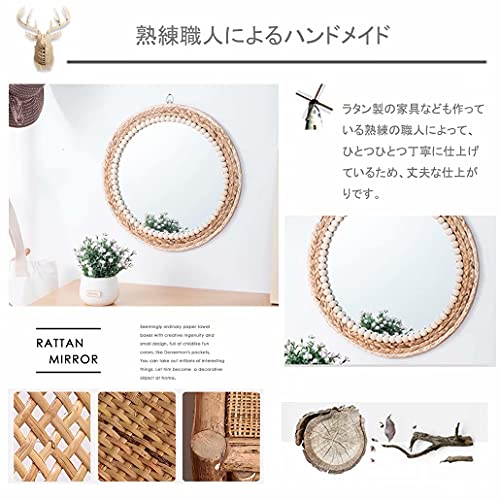 ラタンミラー 円形 ミラー 鏡 ラタン 籐製 壁掛けミラー 丸 ラウンド ナチュラル 手編み 壁掛け アンティーク