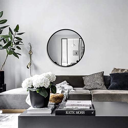 AYNASHOW 鏡 壁掛け ミラー 丸鏡 壁掛け 円形 ミラー 飛散防止加工 ウォールミラー おしゃれ アルミフレーム HD鏡