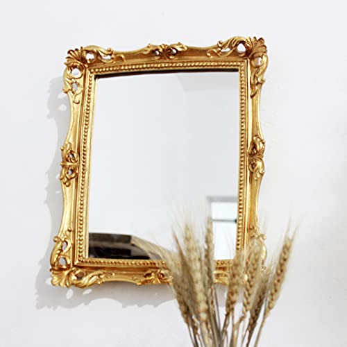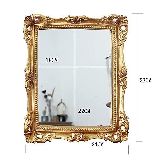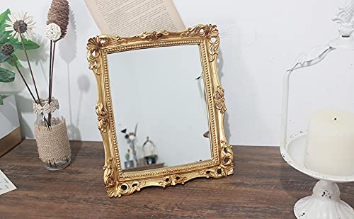 BetyHom ヴィンテージ28x 24 cm装飾ミラー、壁掛け&卓上化粧鏡、スクエアアンティークゴールド